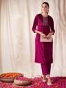 Shae by SASSAFRAS Women Solid Straight Kurta (Purple)