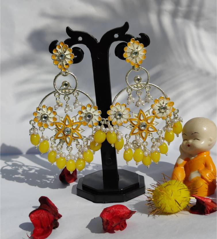 BRIGHT COLOR CHANDBALI JHUMKA MATCHING COLOR WITH BEADS, GOOD WITH ETHENIC WEAR OCCESSION