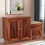 Organize your footwear collection in style with our Sheesham Wood Shoe Rack, featuring multiple shelves and convenient seating. Crafted from premium Sheesham wood, this shoe rack combines functionality with elegance, making it a perfect addition to your entryway or hallway. The rich, natural grain patterns and warm tones of the wood enhance its visual appeal, adding a touch of sophistication to your home decor.