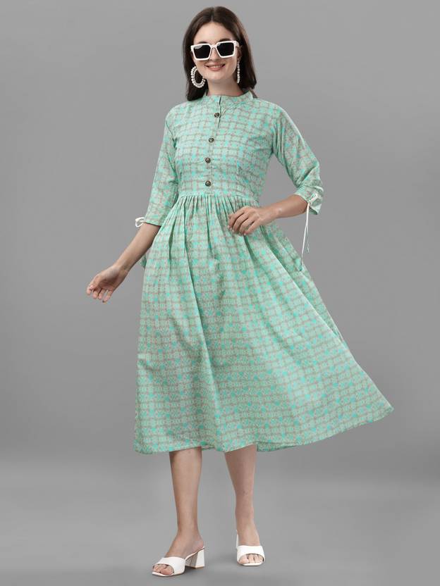 Shagun Fashion NX Women Printed Pure Cotton A-line Kurta (Light Green)