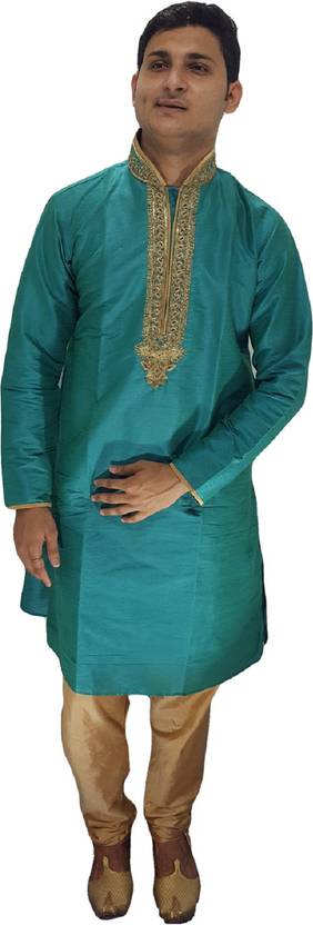 Men Art Silk Kurta Churidar Set