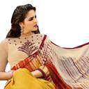Shaily Retails Women Beige & Yellow Abstract Print Georgette Saree