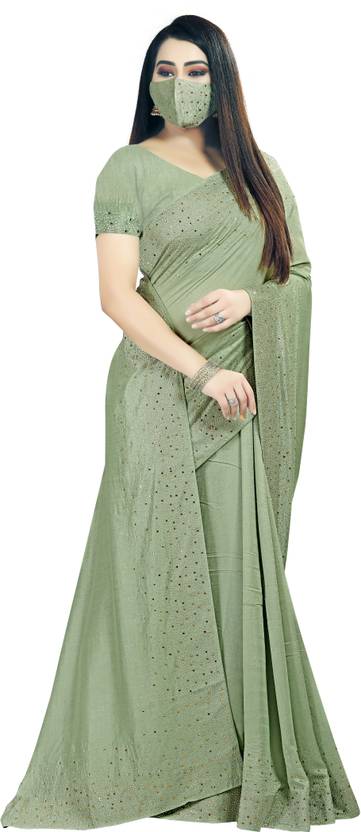 Fabric :- This Saree/Sari/Sadi have soft finished Vichitra Fabric easy and Comfortable to wear., Color :- This Amazing Saree/Sari/Sadi have Soft Finished Pista colour which make you look awesome and star of Party., Occasions :- This Saree/Sari/Sadi is Specially design for wedding, Party and Festive Season of indian women's wear || Work:- Stone Work (Rhinestone )., Length :- Saree/Sari/Sadi Length is 5.5 Meter and Blouse Length is is 0.80 Meter || Dry Clean Only || Fashionable Mask, Package Included :- 1 Saree/Sari/Sadi With Blouse Piece and Fashionable Mask