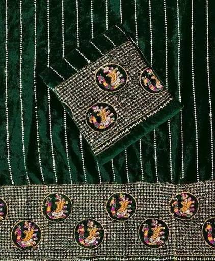 Fabric :- This Saree/Sari/Sadi have soft finished Vichitra Fabric easy and Comfortable to wear., Color :- This Amazing Saree/Sari/Sadi have Soft Finished Bottle Green colour which make you look awesome and star of Party., Occasions :- This Saree/Sari/Sadi is Specially design for wedding, Party and Festive Season of indian women's wear || Work:- Stone Work (Rhinestone )., Length :- Saree/Sari/Sadi Length is 5.5 Meter and Blouse Length is is 0.80 Meter || Dry Clean Only || Fashionable Mask, Package Included :- 1 Saree/Sari/Sadi With Blouse Piece and Fashionable Mask