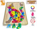 SHALAFI Wooden English AtoZ Alphabets/Animal Cat Puzzle Tray with Knob Educational Board (Beige, Multicolor)