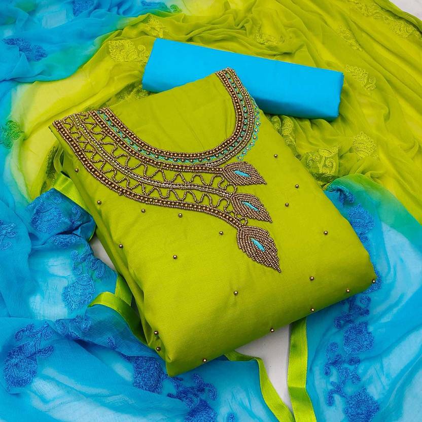 Unstitched Cotton Blend Salwar Suit Material Embellished