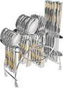 ![Shapes Arena 24 Pcs Stainless Set Cutlery Set with Stand [Content : 6 pcs Dinner Spoon ,6 pcs Dinner fork , 6 pcs Dinner Knife ,6 pcs Tea spoon and 1 pcs Stand ] Stainless Steel Cutlery Set](https://rukminim2.flixcart.com/image/416/416/jpu324w0/cutlery-set/m/8/y/scan24dk-shapes-original-imafbzgx2uqj7ta3.jpeg?q=70&crop=false)
