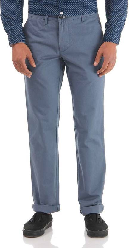 Men Slim Fit Light Blue Cotton Blend Trousers