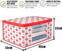 Material: Non Woven,.Package Contents: 2 Piece Saree Cover. Material- Metalic Non Woven .Size: 46 cm x 33 cm x 24 cm .Made from durable, wear and tear-resistant non-woven fabric. Lightweight and flexible saree covers .Carefully stitched to offer additional strength. Ideal for storing sarees and protecting them from dust and insects .Transparent see-through window for easy identification of contents. Durable zipper for easy opening and closing
