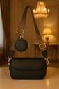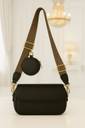 Flap Closure: Full front flap with hidden magnetic button for a seamless and secure close., Chain Strap with Faux Leather Detail: Gold metal chain interwoven with matching faux leather at the top for added shoulder comfort.