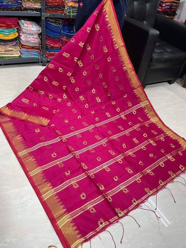 Solid/Plain Tant Cotton Silk Saree (Pink)
