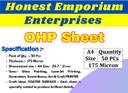 | Key Features | - Transparency: OHP sheets are designed to be transparent, allowing light to pass through them., Printability: OHP sheets are compatible with laser printers and photocopiers, allowing you to print text, images, diagrams, and graphics directly onto the sheet., Durable Material: OHP sheets are typically made from clear acetate or polyester film., Easy Handling: OHP sheets are lightweight and easy to handle., Reusable: Depending on the type of marker used, some OHP sheets can be wiped clean and reused multiple times, making them eco-friendly and cost-effective., Professional projector transparency, Clarity: High optical clarity is essential to ensure sharp, crisp projections without distortion or blurriness., Compatibility: OHP sheets should be compatible with various types of overhead projectors, including inkjet, laser, and copier machines.