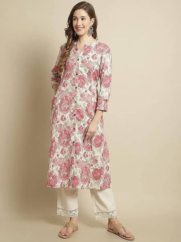 Women Printed Pure Cotton Straight Kurta (Multicolor)