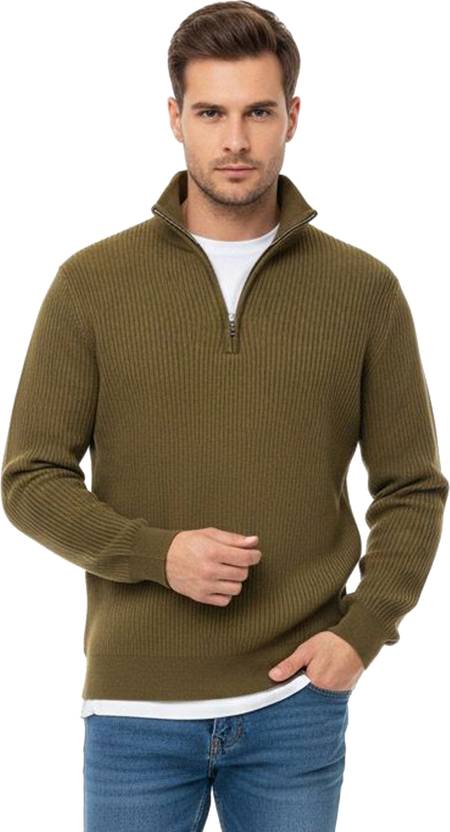 SHAUN Solid High Neck Casual Men Light Green Sweater