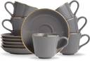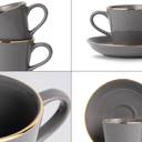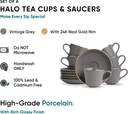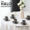 Serve tea in timeless style with this Ceramic Tea Cup & Saucer Set of 6, finished in a soft grey glossy glaze and accented with a refined real gold rim. Each cup holds 180ml, perfectly paired with its matching saucer to create an elegant tea experience—whether you're hosting guests, enjoying quiet mornings, or styling a formal table setting.