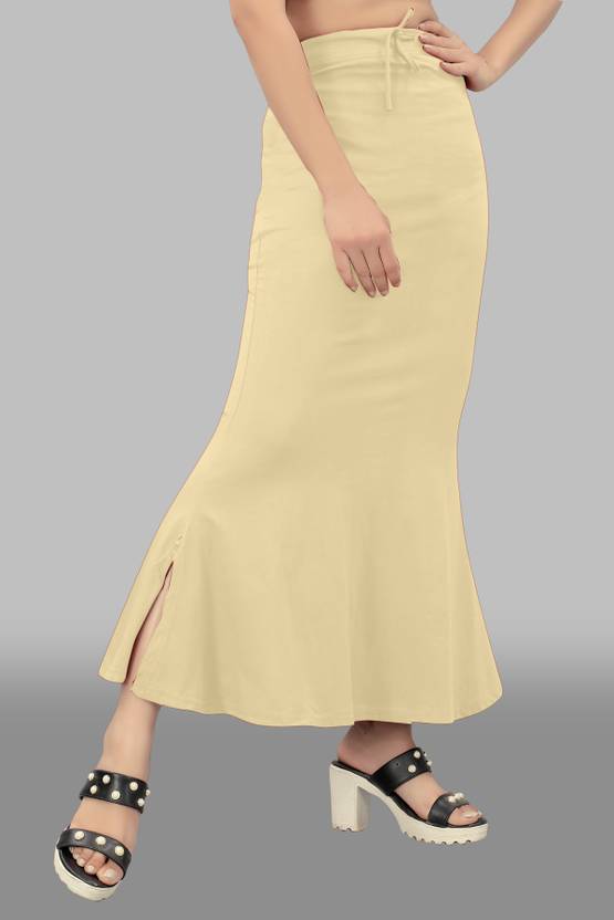 Fabric: Our saree silhouette is fashioned from a high quality stretchable polyester-lycra fabric. Which is very soft, breathable, non-allergic and skin friendly. This is not a compression wear but a comfort wear it can be used not only for sarees but for other outfits like lehengas and gowns also this saree silhouette is designed to hug close to your body and This allows the saree to follow the figuration of your legs and gives you that perfect curvy look EASY MOVEMENT : Mermaid / Fishtail design has more circular fabric at the bottom, so, now you can move very freely and you can cross -LAUGHED DRAWING AND ELASTIC CAN FEEL COMFORTABLE EVEN WHETHER SITTING: The Ellen silhouette comes with a removable drawstring and high quality elastic at the waist round that will never sag and hold the saree exactly where you want Ellen The product is super comfortable and made from super smooth skin friendly fabric which goes with any saree material. This allows the saree to follow the couture of your curves and gives you the perfect drape feel. The fabric composition is 20% Lycra which is highly stretchable and has a slit at the bottom which allows you to walk, jump, run and sit cross legged with ease. Our shapewear can be used with sarees, lehengas, long gowns and can also be worn as a western skirt which can be paired with any crop top.