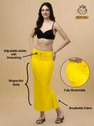 • FABRIC: Our saree silhouette is made from a high-quality stretchable polyester-lycra fabric which is very soft, breathable, non-allergic and skin friendly. It is not a compression wear but a comfort wear, it can be used not only for sarees but also for other apparels like lehengas and gowns.This saree silhouette is designed for hug close to your body and it allows the Saree to follow the figuration of your legs and gives you the perfect curvy look Easy Movement: The mermaid/fishtail design has more circular fabric at the bottom, hence, you can now move very easily and you can feel comfortable even sitting cross-legged.Drawstring and Elastic: KESHAVPIYA silhouette comes with a removable drawstring and high-quality elastic at waist round which will never be loose and hold the saree right exactly where you want KESHAVPIYA product is super comfy and is made out of super smooth skin friendly fabric which goes along with any saree material. This allows the saree to follow your curves and give you the perfect wearing experience.The fabric composition is 20% Lycra which is highly stretchable and has a slit at the bottom that allows you to walk, jump, run and sit cross legged with ease. Our shapewear can be used with sarees, lehengas, long gowns and can also be worn as western skirts which can be paired with any crop top.We have sizes S, M, L, XL, XXL 3XL Petticoat Shapewear for Saree. This black colored saree wear shaper made from lycra fabric and dyed work has targeted compression to smoothen the tummy, thighs and back with side slits that let you comfortably walk, sit cross-legged and dance with easy movements. Allows. It come in 6 different waist sizes. (Please follow the chart for perfect fit)