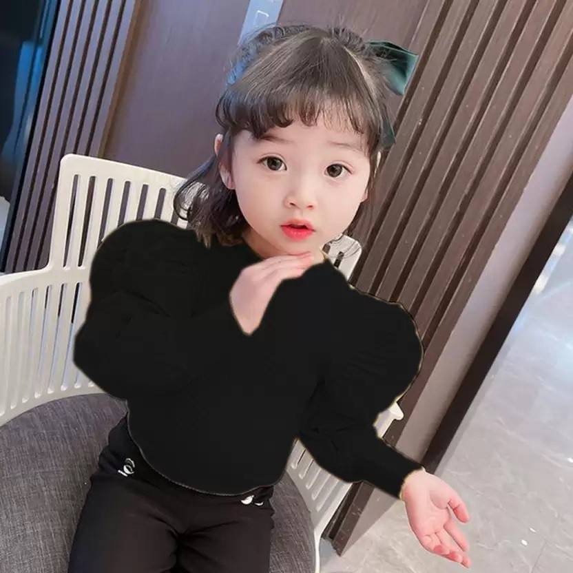 Shazam Mart Girls Party Cotton Blend Fashion Sleeve Top (Black, Pack of 4)