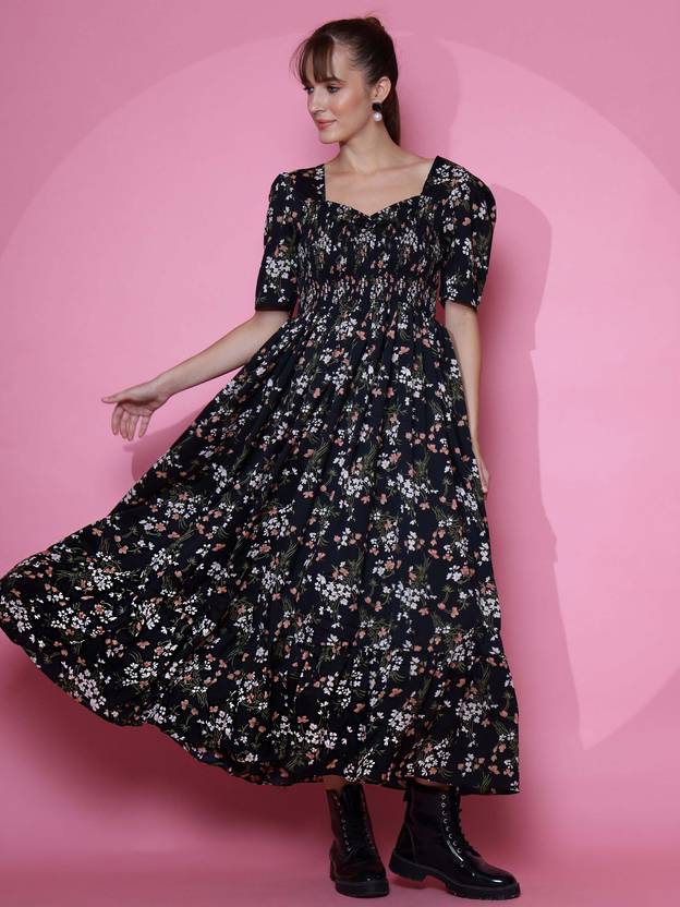 Maxi, Printed Maxi Dress, Floral prints, Fit & Flare, Puff Shoulder, Boho Floral