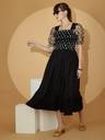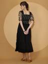 Description: This elegant calf-length fit-and-flare dress is the perfect blend of sophistication and playfulness. Designed to flatter your figure, it features a fitted bodice that accentuates your waist before gently flaring out into a flowing skirt that hits mid-calf, offering a stylish yet comfortable silhouette.