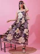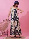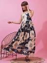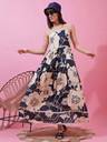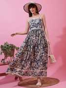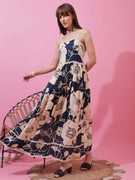 Sheetal Associates Women Fit and Flare Blue, Beige Midi/Calf Length Dress