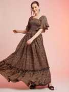 Sheetal Associates Women Fit and Flare Orange Maxi/Full Length Dress