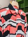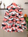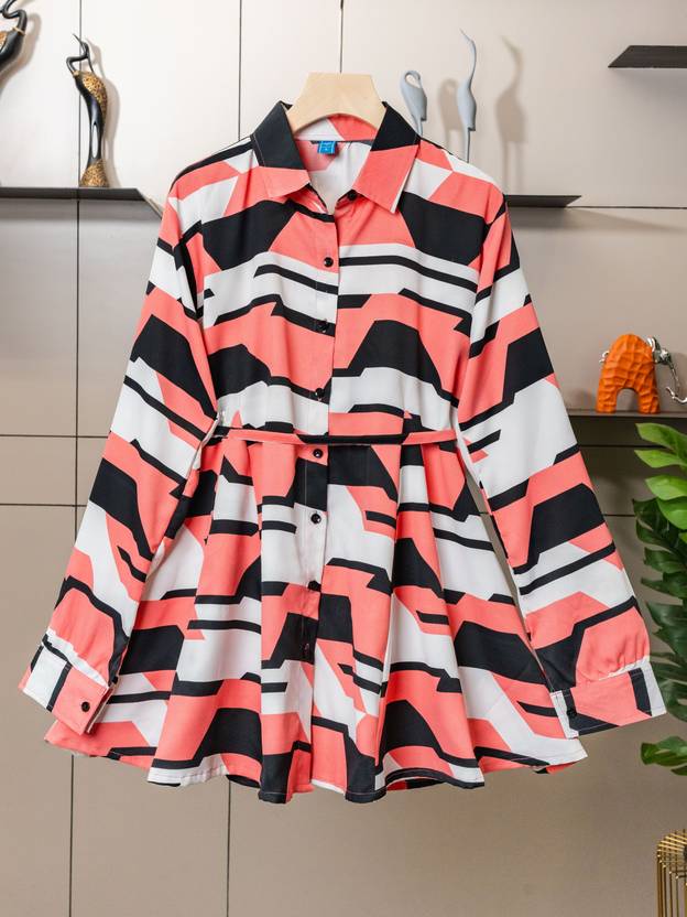 Stand out with this striking abstract print shirt dress, designed in bold hues of coral, black, and white. The flattering fit-and-flare silhouette and classic collar give it a polished yet playful look—perfect for casual outings, work, or brunch dates.