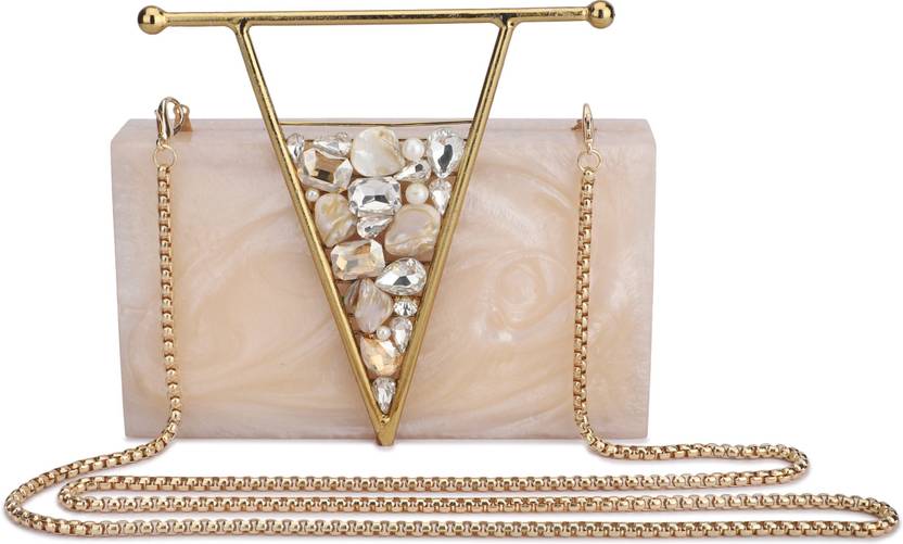 exclusive handle brass resin clutch with extra pocket & heavy imported sling