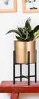 SIRAAJ&SONS Metal Plant Pot Set Indoor Round Planter with Black Metal Stand Gold Pot Plant Container Set Metal