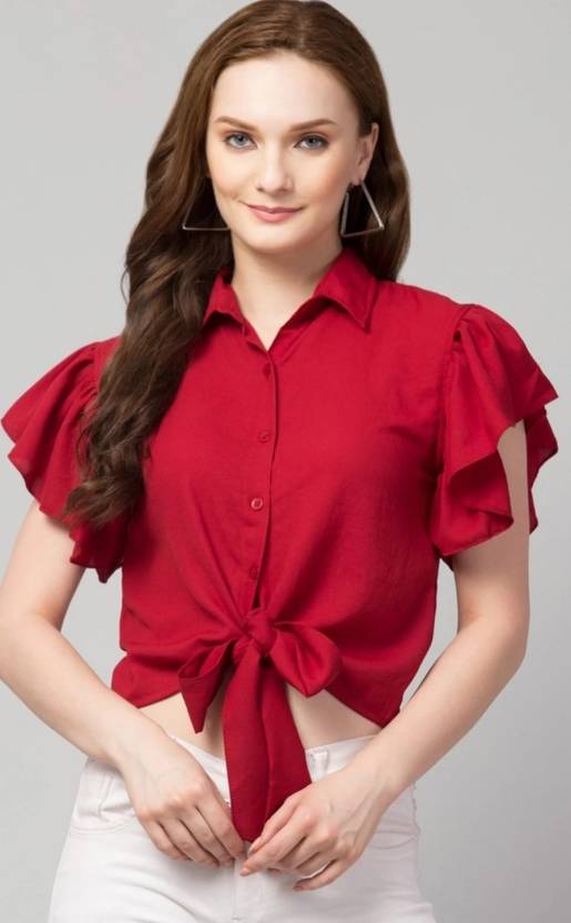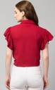 Casual Butterfly Sleeves Solid Women Red Top