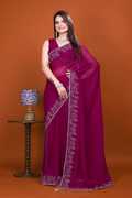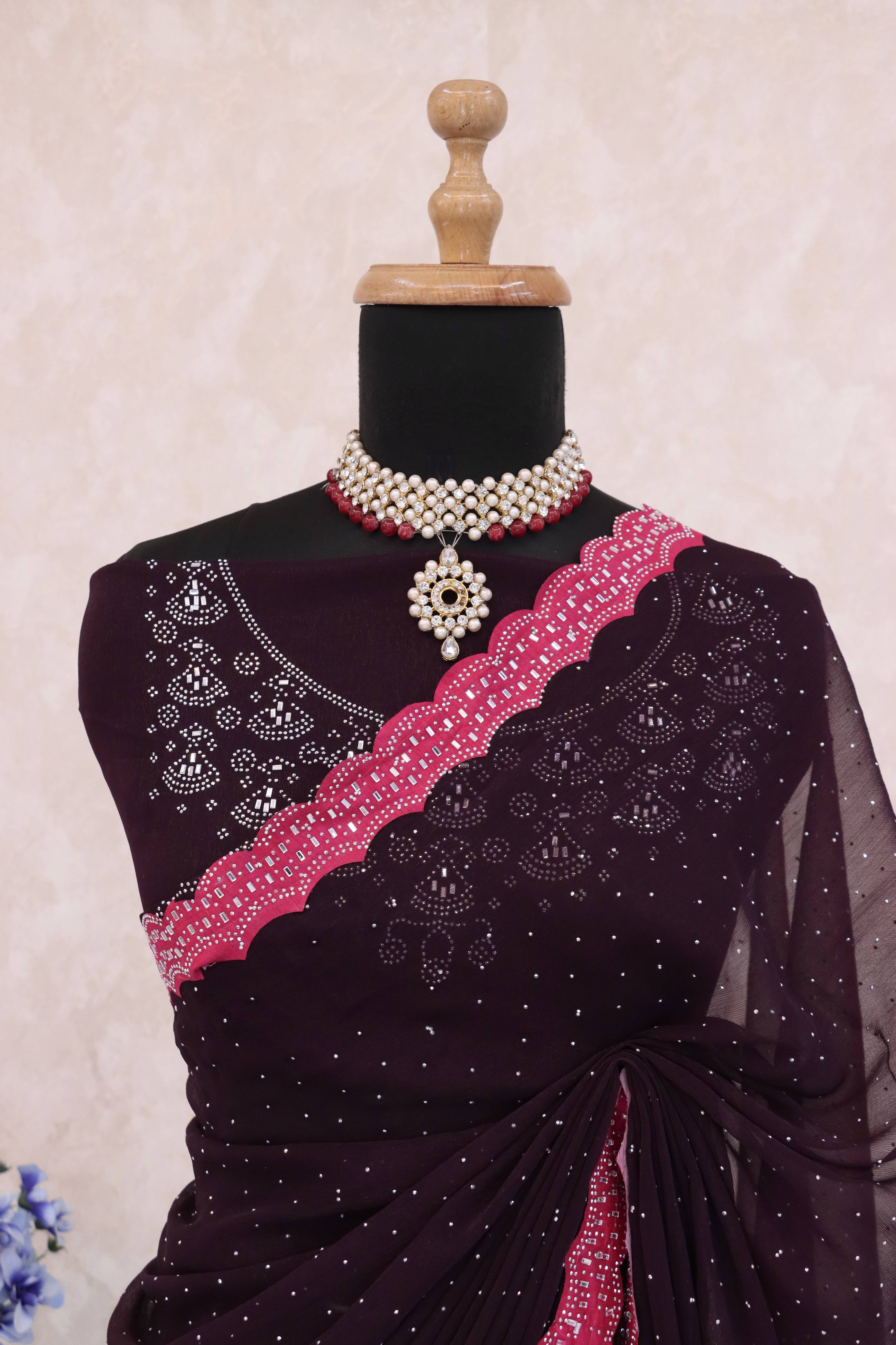 This Saree Made With Georgette Fabric With 5.5 Meter Length. You Will Enhance Your Look.We Also Attached Diamond Work Lace in this Saree.Lace Fabric Is best Quality,we Attached Blouse in this saree which is 0.8 meter.Blouse Is tottaly unstiched So you will stiched it according to your Size.You Also use this saree For Daily Wear At home And Office Work.Sometimes You Will use it For Festival Seasson.After Wearing this Saree You will Feel Something New So dont miss it.