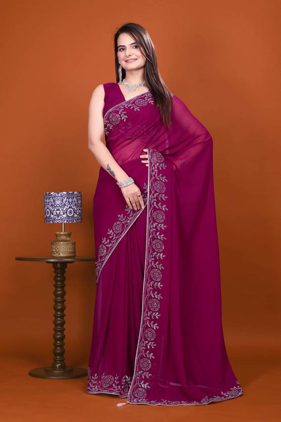 SHELDROM MART Solid/Plain Bollywood Georgette Saree (Pink)