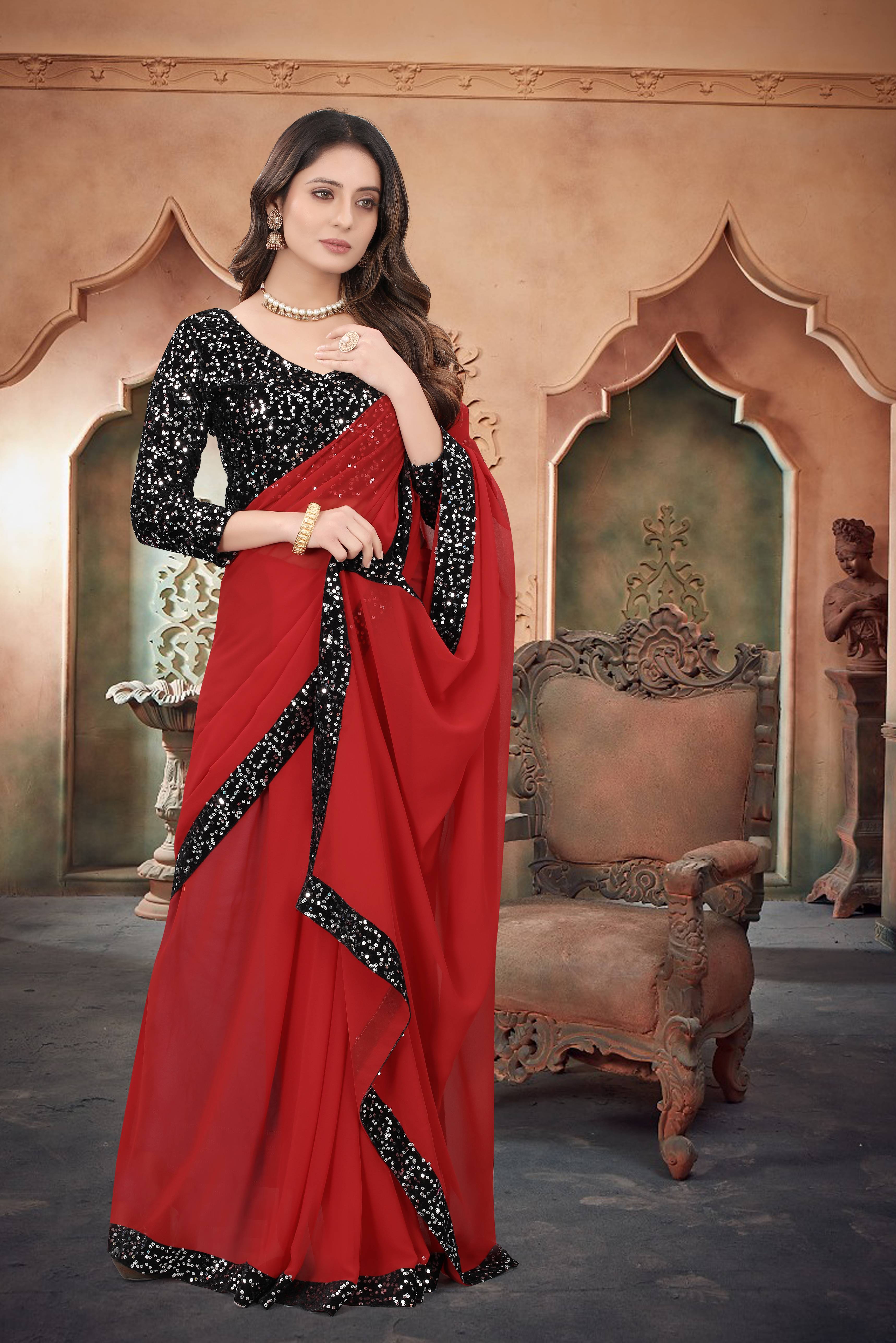 SHELDROM MART Solid/Plain Bollywood Georgette Saree (Pink)