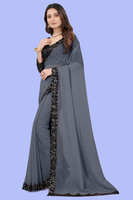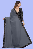 SHELDROM MART Solid/Plain Bollywood Georgette Saree (Grey)
