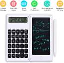 Calculator with Notepad :The calculator and notepad are designed in one piece,you can make notes while calculating,improve study and work efficiency.The calculator supports calculations with up to 12 digits and notepad acts as a cover to protect the calculator from dirt.Press the clear button to erase the notes and protect personal privacy. Lightweight and Portable:This is a lightweight calculator with writing tablet,foldable design, weighs only 4 oz.It is so compact that you can carry it in your pocket,can be quickly removed and used immediately when needed,convenient for taking notes on phone calls, quick notes, and meeting minutes.