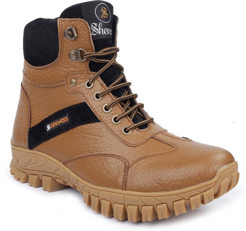 Shences presents Genuine milled leather mens boots, strong TPR sole for firm grip and 360 degree foot comfort for wearer on all kind of terrains and surfaces, extra cushioned and soft footbed for overall foot comfort and support.