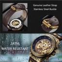 Featuring a vintage skeleton automatic design, this men's wristwatch exudes timeless elegance. Thanks to its intricate craftsmanship, the inner workings of this wristwatch are displayed, offering a captivating glimpse into the interior mechanics. The vintage-inspired aesthetic adds a touch of sophistication to any ensemble, seamlessly transitioning from casual to formal occasions.