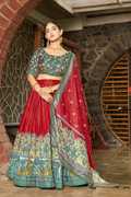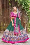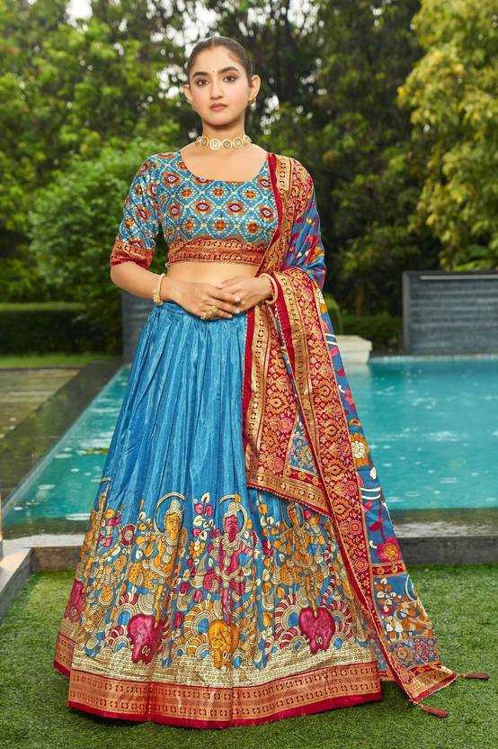 Get festive-ready with this stunning women's ethnic Dola Silk Lehenga Choli with Dupatta, perfect for traditional occasions like Navratri, Dandiya, wedding functions, and Garba nights. Crafted from high-quality Dola Silk fabric, this lehenga choli set features rich multicolor folk art print, a wide flair, and a beautifully printed dupatta with ethnic borders.