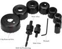 Hole Saw Set 11 Pieces 3/4" - 2-1/2" Hole Saw Kit with Hex Key and Mandrels for Wood, PVC Board, Plastic Plate Drilling