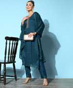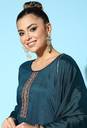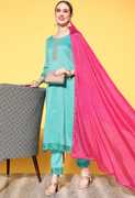 SheWill Blue Chinon Silk Mirror work Gota Embroidered Kurta Pant with Cut Work Dupatta