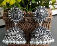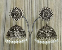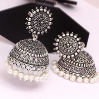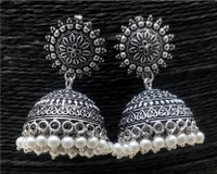 SHI Jewellery German Silver Jhumki Afghani Oxidised Jhumka Pearl Drop Earrings Pearl German Silver Jhumki Earring