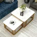 Shibli Handicrafts SHIBLI HANDICRAFTS Square Coffee Tables,2 Table Set Coffee Table with Storage Metal Nesting Table (Finish Color - Golden And White, Set of - 2, Pre-assembled)