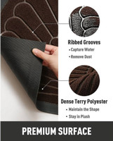 Designed with ribbed grooves and dense terry polyester, this mat helps collect dust and moisture from footwear at entry points. Moreover, the surface can maintain its shape over time, allowing it to remain soft while continuing to trap debris effectively. As shoes pass over the textured pattern, loose dirt is lifted away, supporting a clean surrounding area with minimal effort.