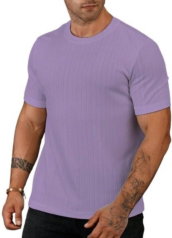 Shienzy Men Solid Round Neck Cotton Blend Purple T-Shirt