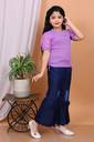 Key search keywords: denim palazzo for kids, violet top for girls, net sleeve top for kids, kids casual outfit, girls