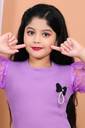 The violet top adds a playful pop of color, with its bright purple hue perfect for any occasion. The net sleeves add a touch of elegance and whimsy, with the sheer fabric offering a light and airy feel that's perfect for spring or summer. The violet blouse with net sleeves is not only stylish but also comfortable, making it great for casual outings, birthday parties, or family gatherings.