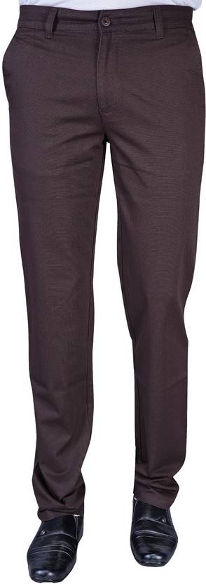 Mini Checks Men Slim Fit Brown Cotton Blend Trousers
