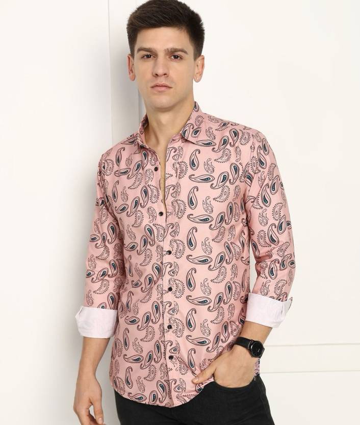 SHIMAK Men Printed Casual Pink, Black, Blue Shirt