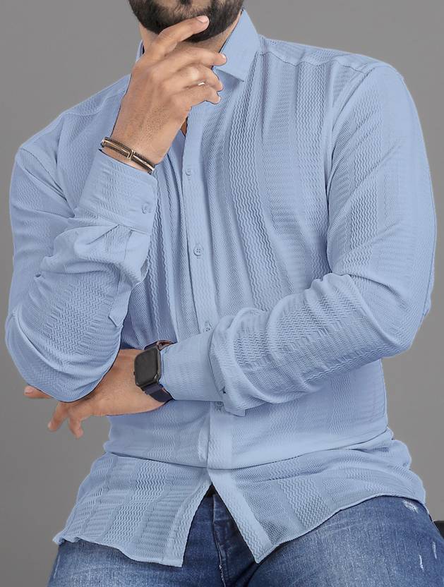SHIMAK Men Self Design Casual Light Blue Shirt