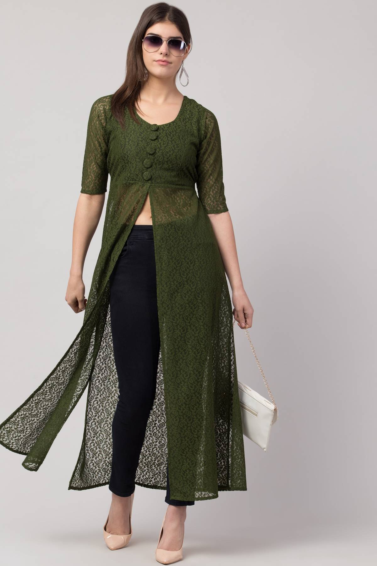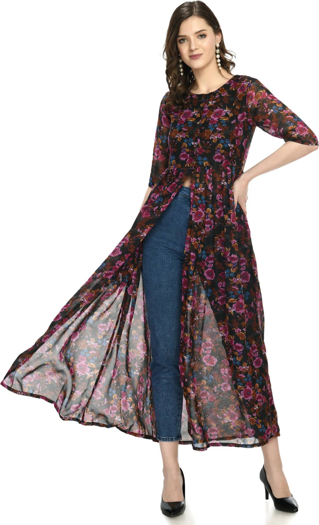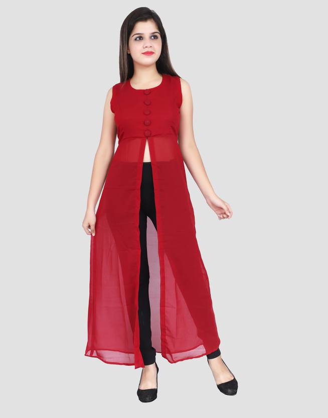 Shimao Women Solid Frontslit Kurta (Maroon)